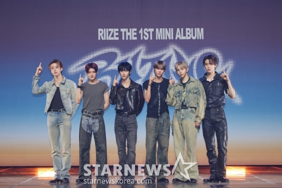 SM엔터테인먼트 신인 그룹 라이즈(RIIZE)가 4일 오후 서울 용산구 블루스퀘어에서 진행된 첫 싱글 '겟 어 기타'(Get A Guitar) 발매 기념 쇼케이스에서 포즈를 취하고 있다. '라이즈'는 가수 윤상의 아들 앤톤을 비롯해 타로, 은석, 성찬, 원빈, 승한, 소희 등 7인으로 구성된 보이 그룹이다. /2023.09.04 /사진=이동훈
