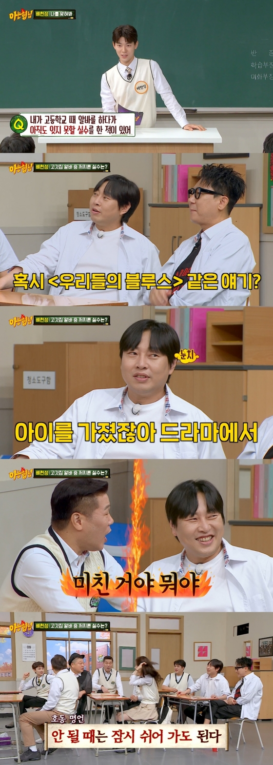 당시 배현성은 '아는 형님' 멤버들과 퀴즈를 풀다가 "고등학생 때 아르바이트를 하다가 아직도 잊지 못할 실수를 한 적이 있다. 어떤 실수였을까?"라고 물었다.