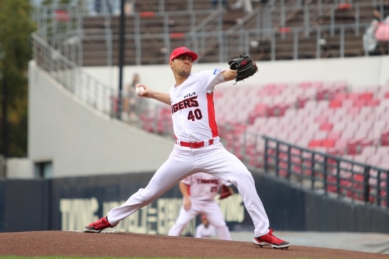 지난 9일 국군체육부대(상무)와 연습 경기서 2이닝(31구) 1피안타(1피홈런) 무사사구 1실점 피칭보다 더 발전한, 뭐 하나 나무랄 데 없는 투구였다.