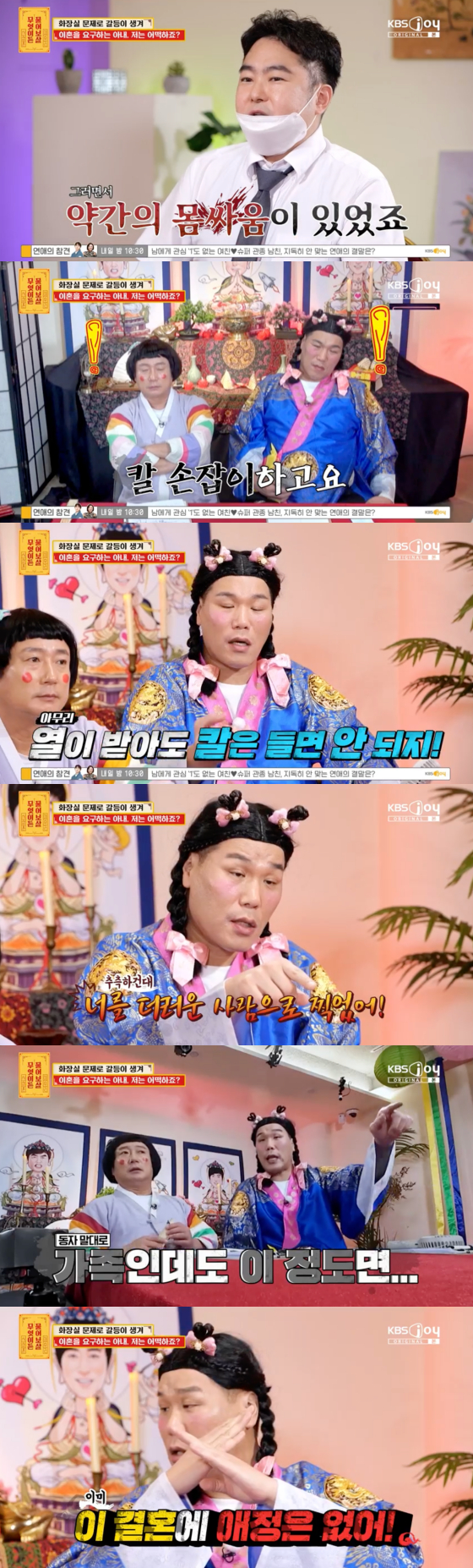 14일 방송된 KBS Joy 예능 프로그램 '무엇이든 물어보살'에는 화장실 문제로 이혼을 요구하는 아내로 인해 고민인 남성 사연자가 출연했다.