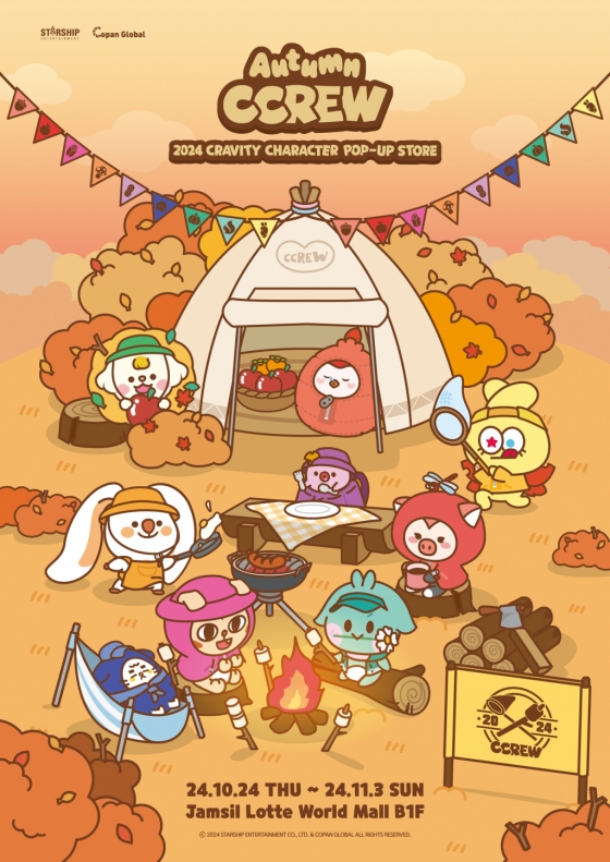 크래비티(세림, 앨런, 정모, 우빈, 원진, 민희, 형준, 태영, 성민)는 24일부터 11월 3일까지 잠실 롯데 월드몰 지하 1층에서 공식 캐릭터 '크크루'의 팝업스토어 '어텀 크크루(AUTUMN CCREW)'를 개최한다.