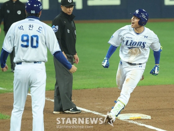 3회에도 삼성 타선의 화력은 꺼지지 않았다. 안타를 때려낸 김헌곤이 견제사로 물러섰지만 이성규가 볼넷으로 출루한 뒤 디아즈의 우전 안타 때 상대의 어설픈 중계 플레이를 틈타 홈까지 파고 들었다.