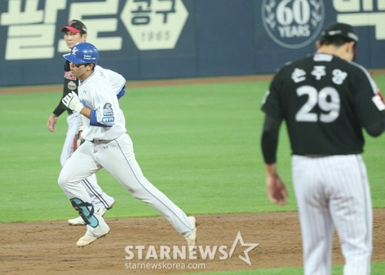 삼성 타선은 3회에도 힘을 냈다. 안타를 때려낸 김헌곤이 견제사로 물러섰지만 구자욱의 대체자로 나선 이성규가 볼넷으로 출루한 뒤 디아즈의 우전 안타 때 상대의 어설픈 중계 플레이를 틈타 홈까지 파고 들었다. 2경기에서 단 한 점도 내주지 않았던 '철벽' 손주영을 상대로 3점을 빼앗아내 더욱 기세를 가져올 수 있었던 3이닝 연속 득점이었다.