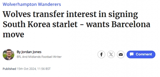 이밖에도 '버밍엄 월드'는 울버햄튼 18세 이하(U-18)에서 활약 중인 지민규(17)를 주목하기도 했다. 매체는 "지민규는 울버햄튼 U-18에서 뛰고 있다. 2023년에 입단한 욍쪽 윙어다"라며 "8월 말 미들즈브러전 3-2 승리 당시 득점을 기록했다. 울버햄튼은 U-18 프리미어리그 북부 4위에 위치했다"고 덧붙였다.