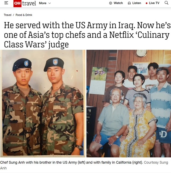 CNN은 18일(현지시각) 공식 홈페이지에 '이라크에서 미군과 함께 복무했다. 지금은 아시아 최고 셰프 중 한 명이자 넷플릭스 흑백요리사 심사위원'이라는 제목으로 안성재 셰프를 집중 조명하는 기사를 냈다.