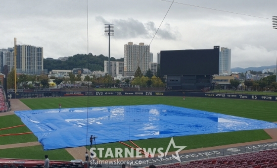 비는 잦아 들었지만 워닝트랙 곳곳엔 많은 웅덩이가 생긴 상황이고 외야 잔디 부분도 많은 비를 머금고 있어 정비 없이 경기를 펼치기엔 선수들의 부상으로 이어질 염려가 크기에 경기 개시가 늦어지더라도 구장 정비는 필수적인 상황이다. 오후 8시 이후부터는 시간당 5㎜, 최대 7㎜의 비가 내릴 것으로 예보됐다.