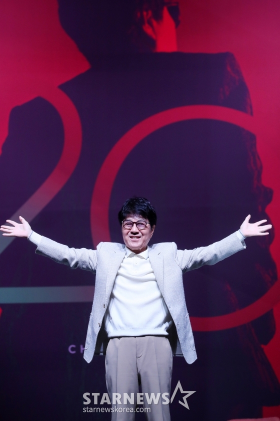 가수 조용필이 22일 오후 서울 용산구 블루스퀘어에서 진행된 정규 20집 '20' 발매기념 기자간담회에 참석해 포즈를 취하고 있다.