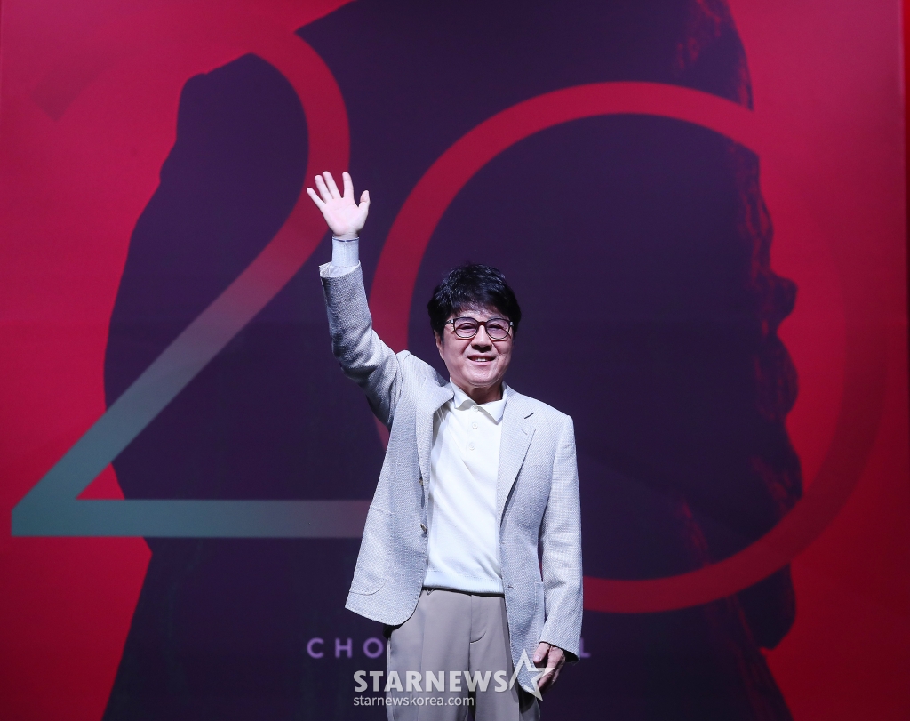 가수 조용필이 22일 오후 서울 용산구 블루스퀘어에서 진행된 정규 20집 '20' 발매기념 기자간담회에 참석해 포즈를 취하고 있다.