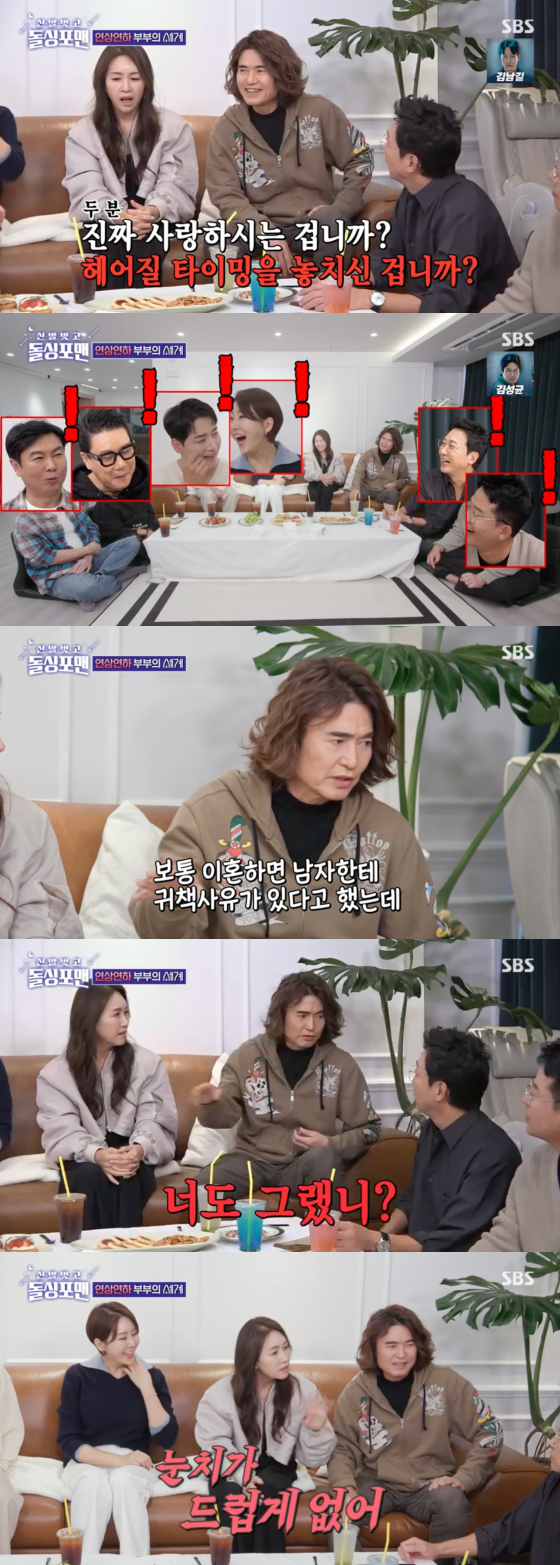이날 MC 탁재훈은 홍서범에게 "(조갑경을) 사랑하는 거냐. 아니면 (헤어질) 타이밍을 놓친 거냐"고 장난스럽게 물었다.