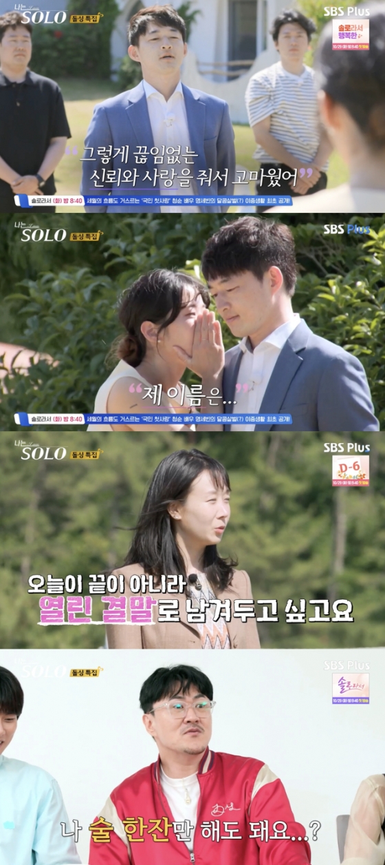 23일 오후 방송된 SBS 플러스, ENA 리얼 데이팅 프로그램 '나는 SOLO'에서는 22기 돌싱남녀의 최종 선택 모습이 그려졌다.