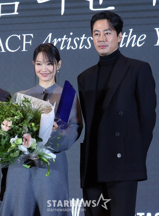 특히 이날 전년도 수상자인 조인상이 신민아에게 트로피를 건네며 훈훈한 투샷이 완성됐다. 그는 "오늘의 수상자와 개인적인 인연이 있다. 제가 고3, 수상자가 중3 때 그때부터 모델 활동을 같이 했고 오랜 시간 활동하며 같이 영화('마들렌', 2003)도 찍고, 학교(동국대)도 같이 다니고, 지금까지 인연이 계속되고 있다. 그래서 그런지 시상하는 제 마음이 감회가 새롭다"라고 신민아를 소개했다.