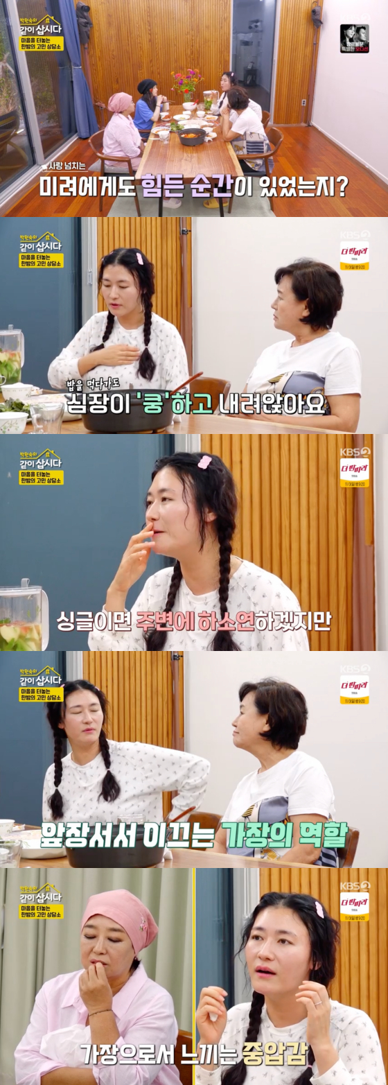 24일 방송된 KBS 2TV 예능 프로그램 '박원숙의 같이 삽시다'에서는 김미려가 현실적인 고민을 털어놓는 모습이 그려졌다.