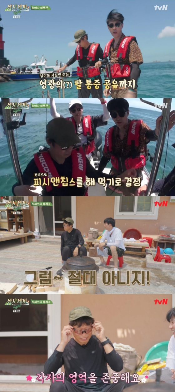세 마리의 부시리를 낚은 후 한 마리는 놓아줬고, 유해진은 "손맛 봤으니까 한 마리는 살려주자. 우리 두 마리면 충분하다. 쟤는 운도 좋다"면서 "고기도 잡고 경치도 좋고 마음이 편안하다"라고 말했다. 차승원은 감자를 구해 피시앤칩스를 만들기로 했고, "한 마리씩 다 잡고 의미가 있다"고 덧붙였다.