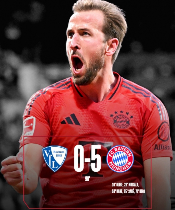 뮌헨은 27일 오후 11시 30분(한국시간) 독일 보훔의 보노비아 뤼르스타디온에서 열린 '2024~2025시즌 독일 분데스리가' 8라운드 원정에서 보훔을 5-0으로 완파했다. 개막 후 리그 8경기(6승2무) 무패 행진을 이어간 뮌헨은 승점 20으로 라이프치히에 골득실에서 앞선 선두를 질주했다.