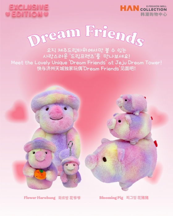 특히 제주 흑돼지 본연의 색감 그대로 반영한 키링 '까망이'는 리미티드 에디션으로 특별 제작됐다. 검은색 돼지 인형에 핫핑크 컬러의 꼬리가 포인트다. 드림타워 3층에 위치한 'HAN컬렉션 K패션몰' 기프트샵에서 판매하며 가격은 2만1,000원부터 3만8,000원까지다.