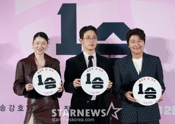 28일 오전 서울 용산구 CGV용산 아이파크몰에선 새 영화 '1승' 제작보고회가 열렸다. 연출과 각본의 신연식 감독과 출연 배우 송강호, 박정민, 장윤주 등이 참석했다.