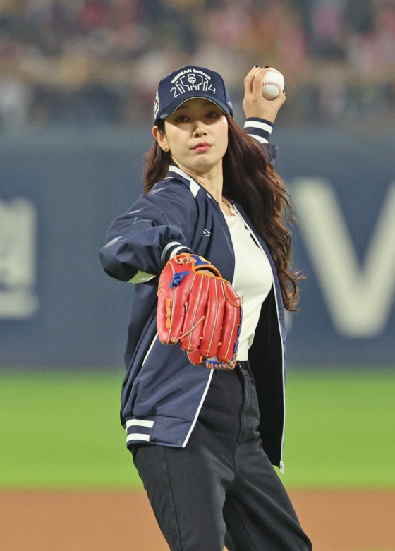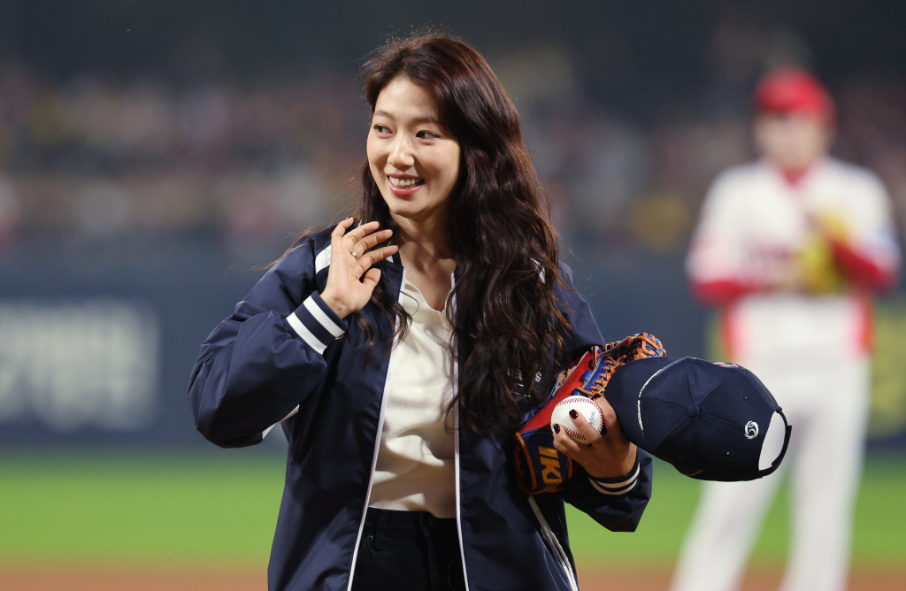 박신혜는 28일 오후 광주-기아챔피언스필드에서 열린 '2024 KBO 포스트시즌 한국시리즈 5차전' KIA-삼성전 경기에 시구자로 마운드에 올랐다.