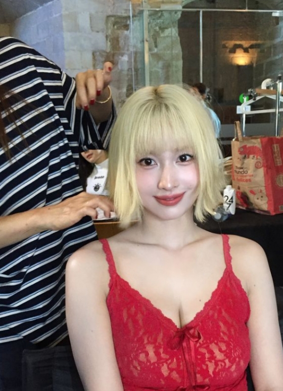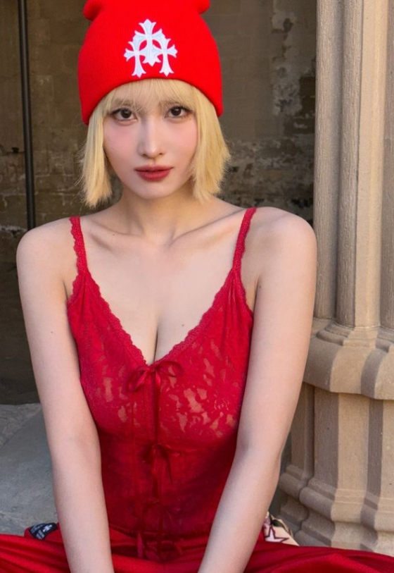 공개된 사진 속 모모는 금발 머리를 하고 레드 시스루 상의를 착용했다. 특히 볼륨감을 드러내는 의상은 그간 모모가 보여줬던 매력과 색달라 이목을 끌었다.