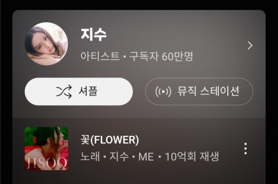 블랙핑크 지수의 솔로 데뷔곡 '꽃'(FLOWER)이 유튜브뮤직에서 10억 스트리밍을 돌파했다.