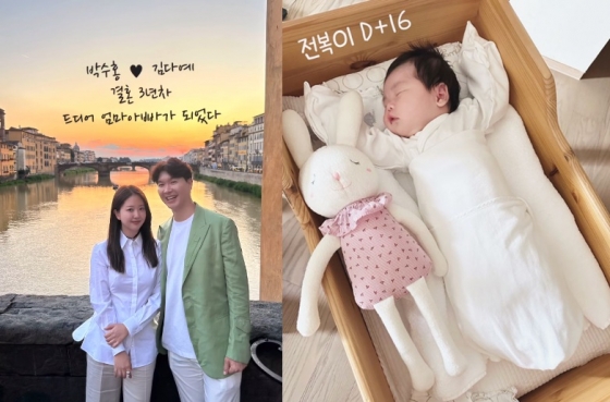 박수홍 김다예 부부가 생후 16일된 딸의 모습을 직접 공개했다.