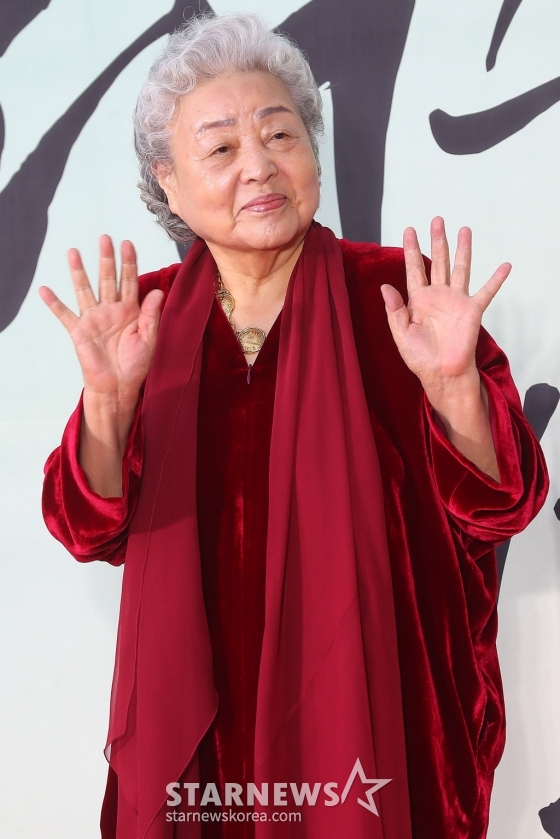 원로배우 강부자가 31일 오후 서울 중구 국립극장 해오름극장에서 진행된 '2024 대한민국 대중문화예술상' 레드카펫 행사에 참석해 포즈를 취하고 있다.