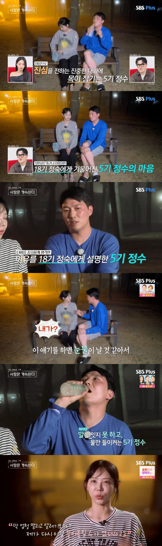 '나솔사계' 5기 정수(가명)가 18기 정숙(가명) 앞에서 눈물을 흘렸다.