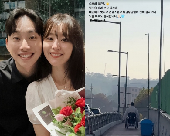 이를 두고 송지은은 "뒷모습 바라 보고 있는데 대단하고 멋지고 존경스럽고 몽글몽글함이 잔뜩 올라오네. 오늘 하루도 감사합니다"라며 박위에 대한 애정을 표했다.