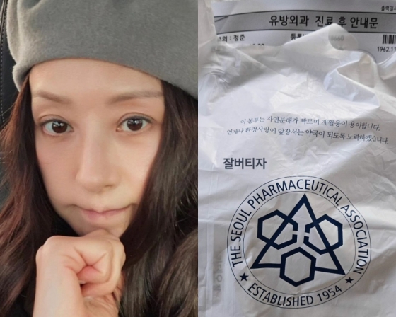 공개된 사진에는 '유방외과 진료 후 안내문'이라는 종이와 함께 약국 봉투가 담겼다.