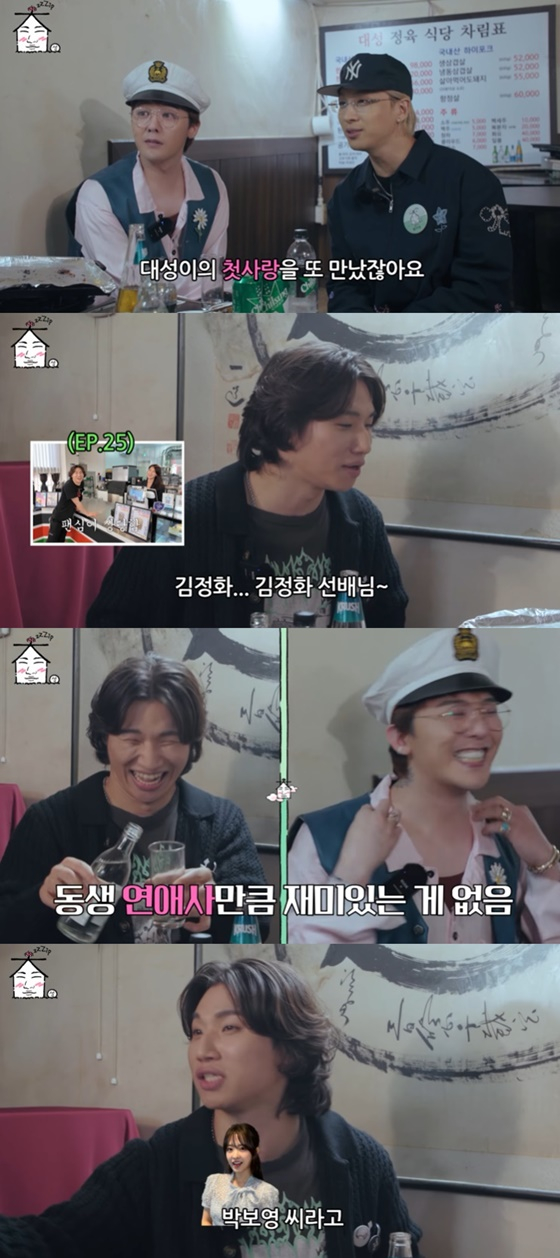 이날 태양은 "대성이가 우리한테 늘 얘기했었지만, 대성이의 첫사랑을 최근에 만나지 않았느냐. 어땠냐?"고 물었다.