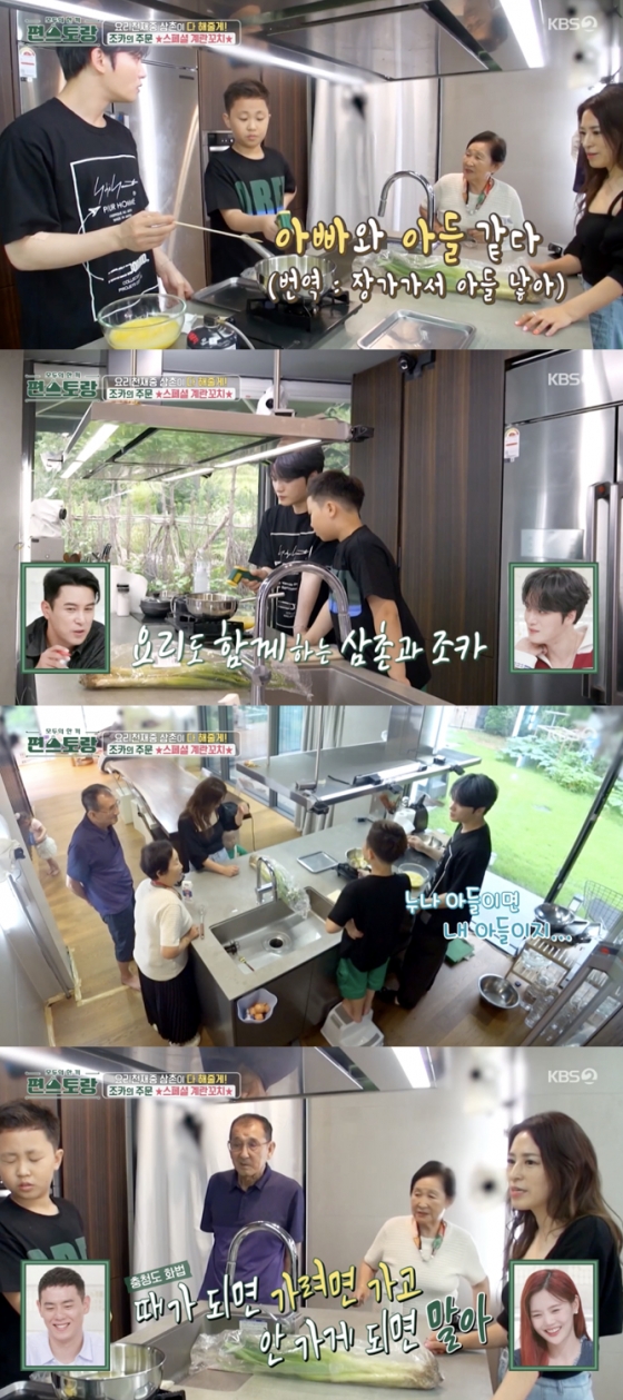1일 방송된 KBS 2TV '신상출시 편스토랑'에서는 딸부자집 막내아들이자 조카부자인 김재중이 부모님이 계신 본가에 방문한 장면이 그려졌다.