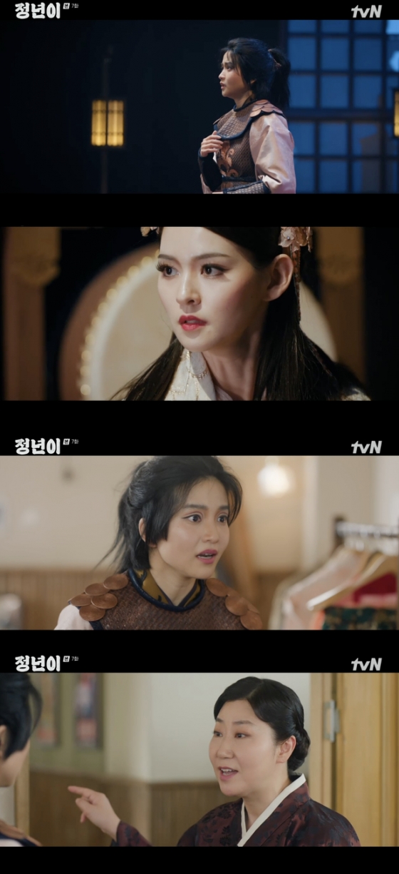 2일 방송된 tvN 토일드라마 '정년이' 7회에서는 국극단의 정기공연 '자명고' 무대 위에서 윤정년(김태리 분)이 이성을 잃고 난데없이 소리를 이어간 모습이 그려졌다.
