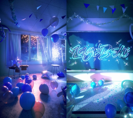 영상 속 화면은 어스름한 밤의 교실을 비춘다. 해가 지기 전까지 축제를 즐긴 듯 풍선과 콘페티가 흩뿌려져 있고, 창문 너머로 폭죽 소리와 함께 불꽃놀이가 펼쳐진다. 칠판에는 분필로 그린 듯한 'Last Bell' 로고가 빛나며 영상은 마무리된다. 적막한 교실과 이를 둘러싸고 있는 화려한 축제의 흔적들이 대조되어 신보에 대한 궁금증을 자극한다.