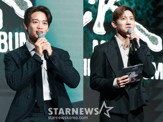 이어 민호는 최강창민이 MC로 지원사격을 해준 사실에 감사함을 드러냈다. 그는 "오늘 긴장되고 떨릴 수 있는데 나의 창민이 형이 옆에 있어서 너무 감사하다. 우리는 평소에도 많이 보는 사인데 옆에 있어서 든든하다. 지금 일본 투어 중인 걸로 알고 있는데 나를 위해서 멀리서부터 달려와줘서 감사의 말씀을 드리고 싶다"라며 최강창민을 향해 무한 애정을 드러냈다. 실제로 최강창민은 민호의 기자간담회 진행을 위해 지난 3일 입국했다고.