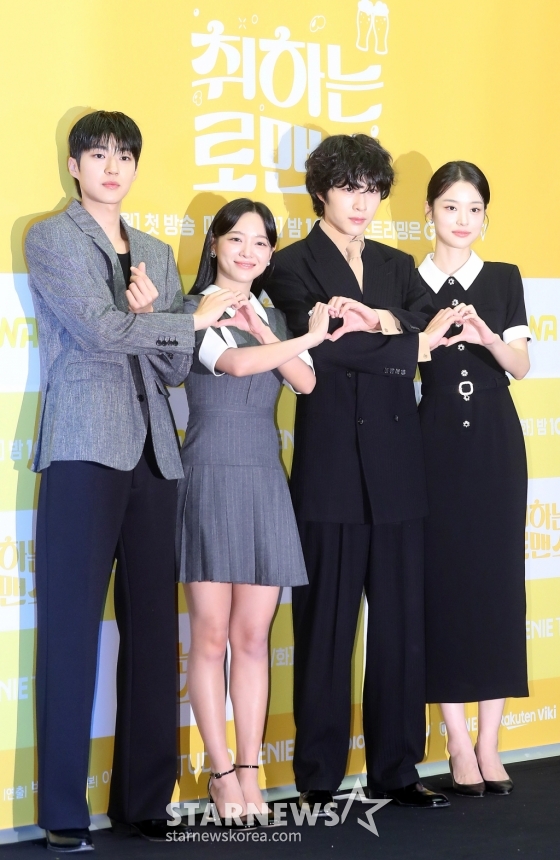 배우 백성철, 김세정, 이종원, 신도현이 4일 오후 서울 마포구 상암동 스탠포드 서울에서 진행된 ENA 월화드라마 '취하는 로맨스' 제작발표회에 참석해 포즈를 취하고 있다.