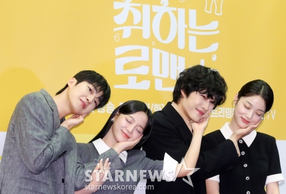 배우 백성철, 김세정, 이종원, 신도현이 4일 오후 서울 마포구 상암동 스탠포드 서울에서 진행된 ENA 월화드라마 '취하는 로맨스' 제작발표회에 참석해 포즈를 취하고 있다.