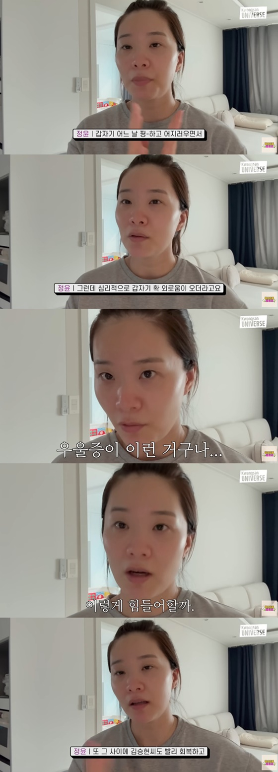 영상에서 장정윤은 "아기를 낳고 나서 지난주에 산후우울증이 갑자기 왔다"고 밝혔다.