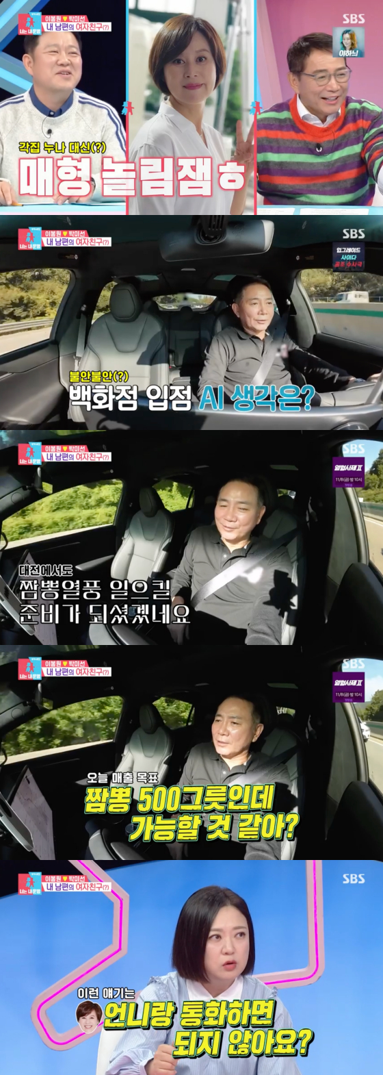 스튜디오에서 이를 지켜보던 MC 김숙이 "저런 이야기는 박미선 언니와 나누는 게 낫지 않겠냐"고 말하자 이봉원은 "(박미선은) 바쁘다. 소식을 기사로 안다"고 너스레를 떨어 웃음을 자아냈다.