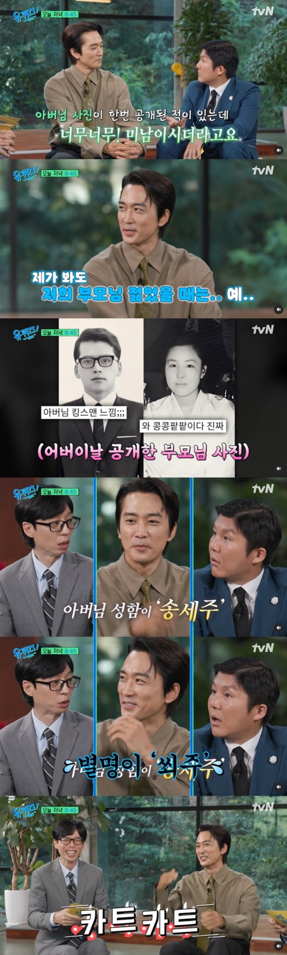 한편 조세호는 송승헌의 아버지에 대해 "아버님 사진이 한번 공개된 적이 있는데 너무너무 미남이시더라"라고 말했다. 이에 송승헌은 "제가 봐도 저희 아버지, 어머니 젊었을 때는 정말 (미남, 미녀셨다)"라며 고개를 끄덕였다.