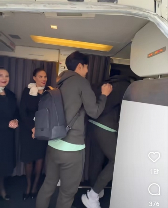 '캡틴' 손흥민(32·토트넘)이 활짝 웃는 얼굴로 원정 비행기에 몸을 실었다.
