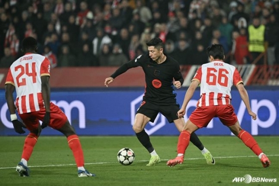 스페인 라리가 선두를 달리고 있는 바르셀로나를 상대해보기도 했다. 즈베즈다전에 바르셀로나는 최정예 라인업을 가동했다. 스페인 축구 천재 라민 야말(17)과 브라질 국가대표 공격 자원 하피냐(27)가 선발로 나섰다. 최전방에는 로베르트 레반도프스키가 섰다.