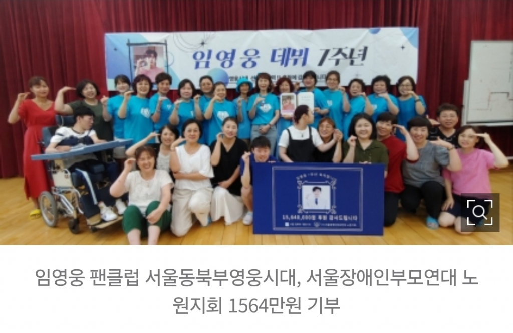 서울동북부방과 서울장애인부모연대 노원지회는 지난해 8월 8일 임영웅 데뷔 7주년 기념일에 1564만 원을 기부하면서 처음 인연을 맺었다.