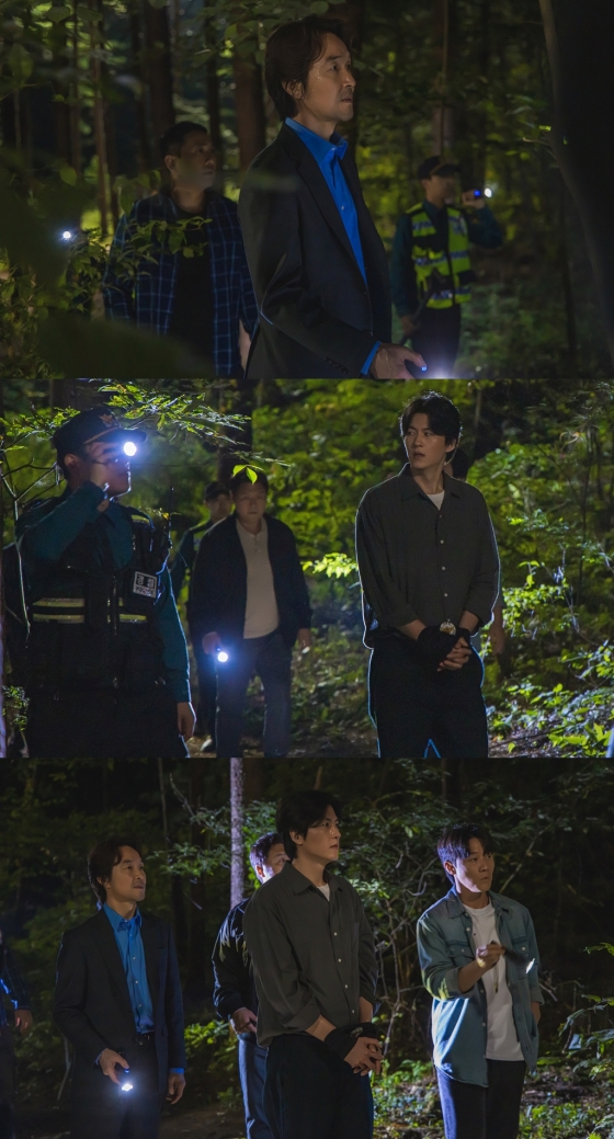 이런 가운데 7일 공개된 8회 스틸컷에는 태수와 경찰들이 준태와 함께 야산에서 '송민아 살인사건'을 재조사하는 장면이 담겨 있어 눈길을 끈다. '송민아 살인사건'에서 아직까지 의문으로 남은 것이 바로 사라진 시체의 행방이다. 준태는 모든 것을 체념한 듯한 표정으로 경찰들을 데리고 야산 어딘가로 향한다. 태수와 경찰들의 손전등 불빛이 어딘가로 향하고, 과연 무언가를 발견한 것인지 궁금증이 치솟는다.