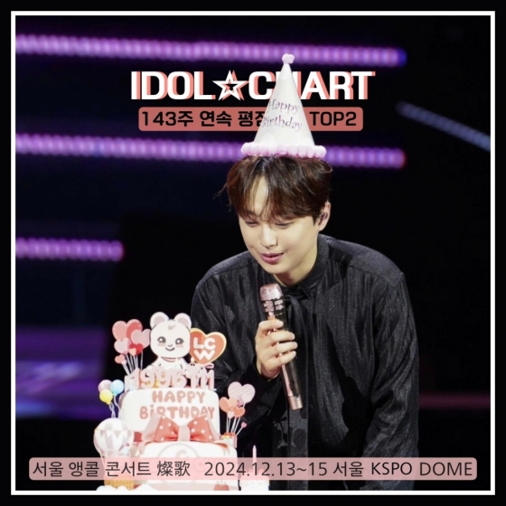 가수 이찬원이 아이돌차트 평점랭킹 143주 연속 톱2를 기록하며 인기를 빛냈다.