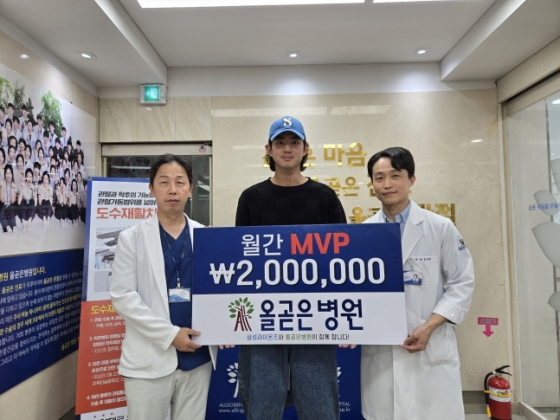 올곧은병원 우동화 병원장과 임경환 원장이 8일 시상했고 구자욱에게는 소정의 상품권이 주어졌다.