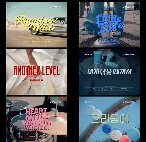 타이틀곡 'Running Wild'가 영상의 포문을 연다. 'Running Wild'는 뉴 웨이브(new wave) 사운드가 인상적인 브리시티 록(British rock) 기반의 팝(Pop rock) 장르 곡이다. 희망을 향해 숨이 차도록 달려 나가자는 밝고 따뜻한 메시지를 노래한다. 영국의 전설적인 팝 밴드 테이크 댓(Take That)의 게리 발로우(Gary Barlow)가 프로듀서로 참여해 곡의 완성도를 높였다.