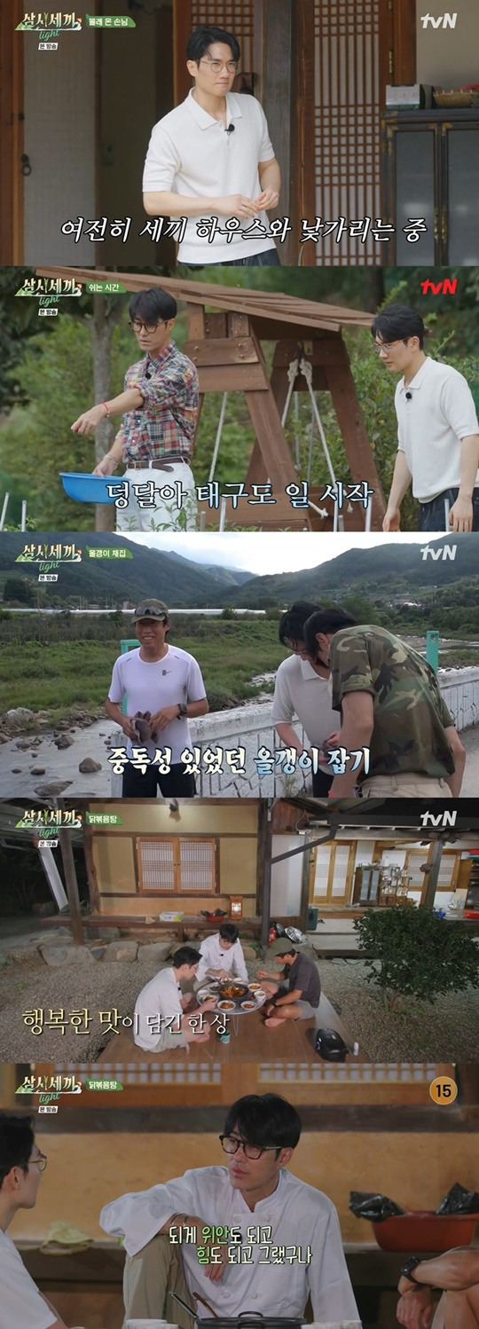 지난 8일 방송된 tvN '삼시세끼 Light'에서는 세끼 하우스에 찾아온 엄태구가 차승원, 유해진의 극진한 보살핌 속에서 세끼 하우스에 100% 적응했다.