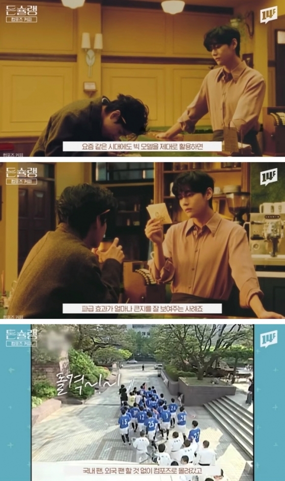 MBC 유튜브 채널 일사에프(14F)의 돈슐랭 콘텐츠는 뷔가 컴포즈커피 브랜드를 대중에게 각인시킨 광고 효과를 분석한 영상을 게재했다.
