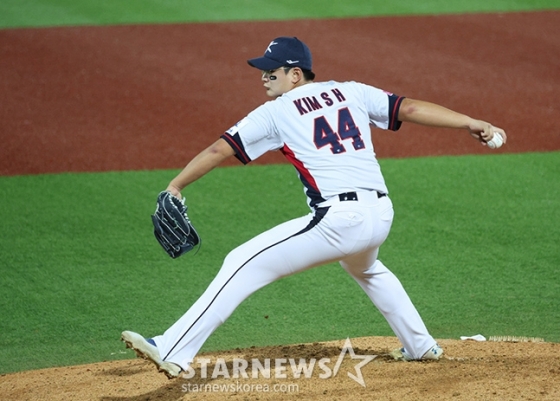 김서현은 10일 대만 타이베이시의 톈무 야구장에서 열린 대만프로야구(CPBL) 웨이취안 드래곤스와 평가전에서 4회 초 대표팀의 3번째 투수로 등판했다.