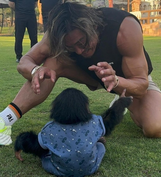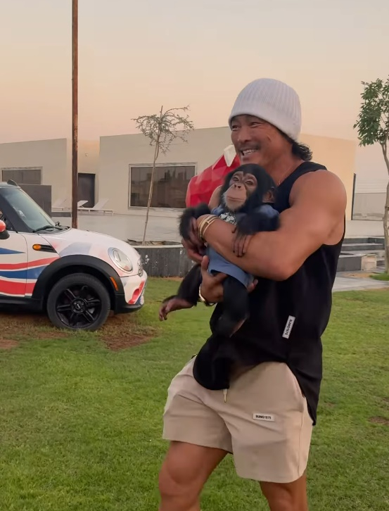 사진과 영상 속 추성훈은 아랍에미리트의 야생동물 보호소에 방문해 아기 원숭이 '키키'를 안으며 행복해하는 모습이다.