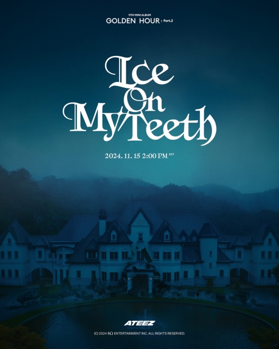 12일 에이티즈는 공식 SNS를 통해 미니 11집 '골든 아워 : 파트 2(GOLDEN HOUR : Part.2)'의 타이틀곡 '아이스 온 마이 티스(Ice On My Teeth)' 뮤직비디오 포스터를 공개했다.